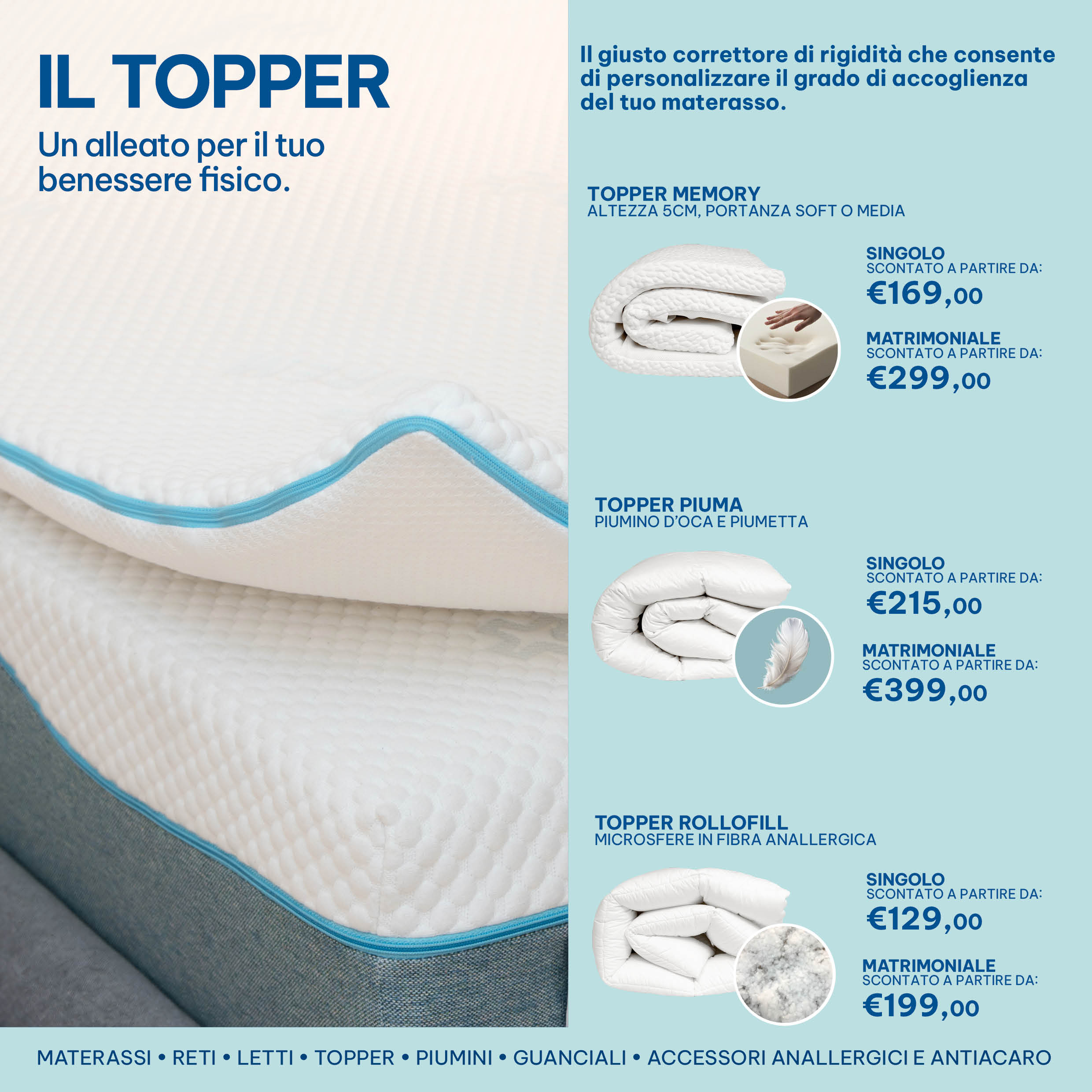 Materassi • Reti • Topper • Guanciali • Accessori letto