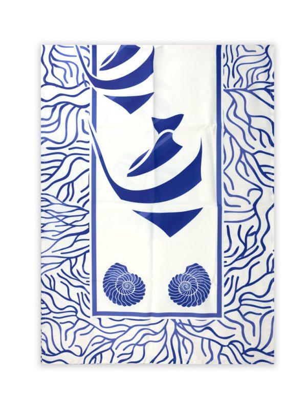 Striscia e centra tavola pesci blu 50×150 con disegni piazzati in cotone