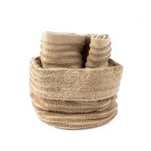 Cestino in spugna con logo in jacquard con 4 lavette 30×30 in 100& cotone