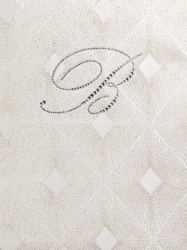 Copriletto matrimoniale liscio in jacquard con logo in cristalli. Composizione tessuto: 100% poliestere