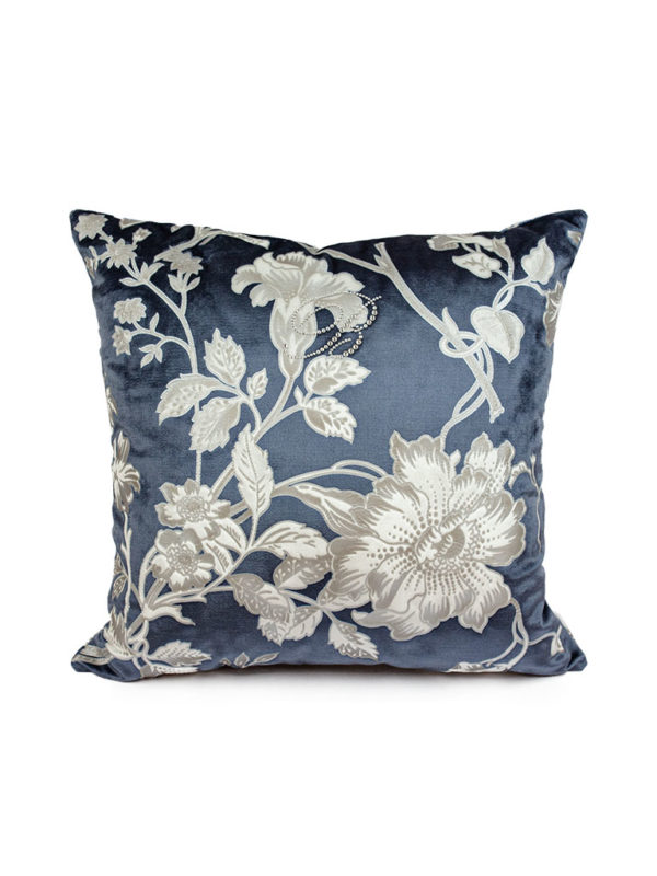 Cuscino in velluto stampato con logo in cristalli. Misura: 42×42. Imbottitura compresa