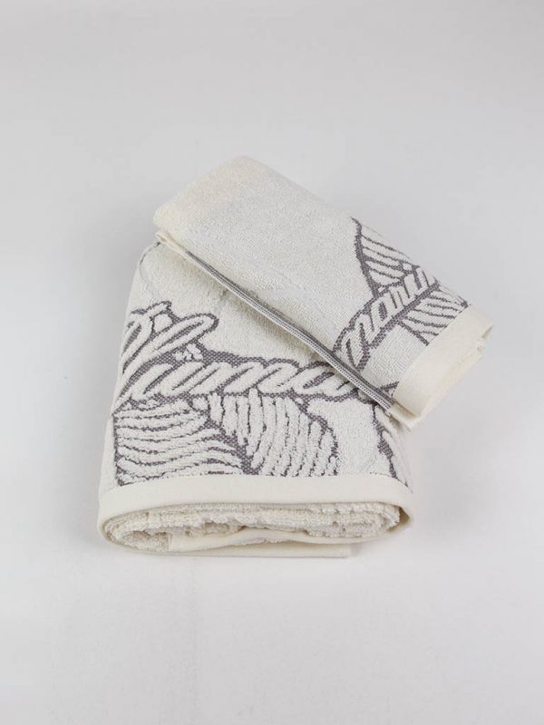 Set spugna coppia 1+1 in jacquard con balza finale piazzata e logo cesellato tinto in filo cm. (40 x 60 + 60 x 110) – 100% cotone idrofilo – 400 gr./mq.