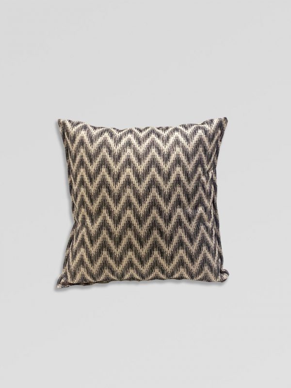 CUSCINO ARREDO CHEVRON, Misto 40% lino 60% cotone stampato — Due colori: Grigio, Ocra — Tre misure 50×50 cm, 60×60 cm, 35×50 cm