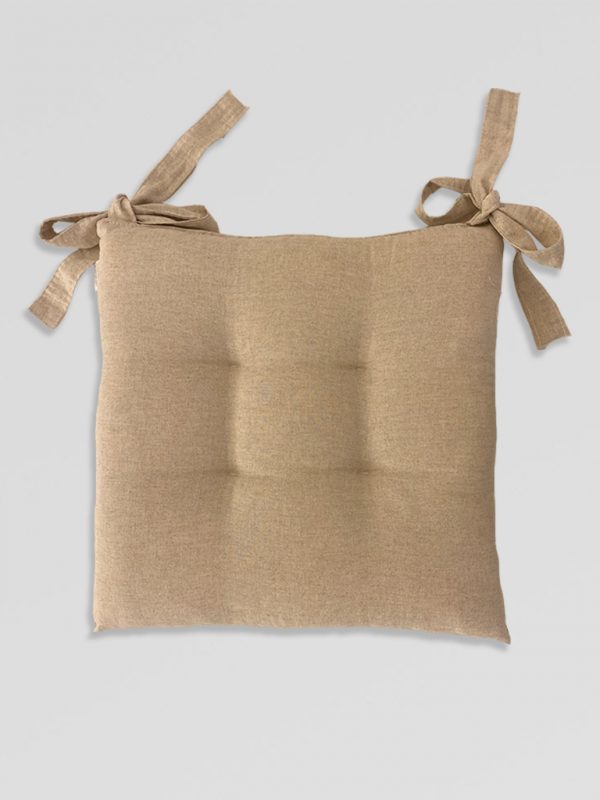 CUSCINO DA SEDUTA ÉCRU 100% Cotone, Interno Poliuretano — Misura: 40 x 40 cm con lacci per essere assicurato alla seduta — Lavabile in lavatrice