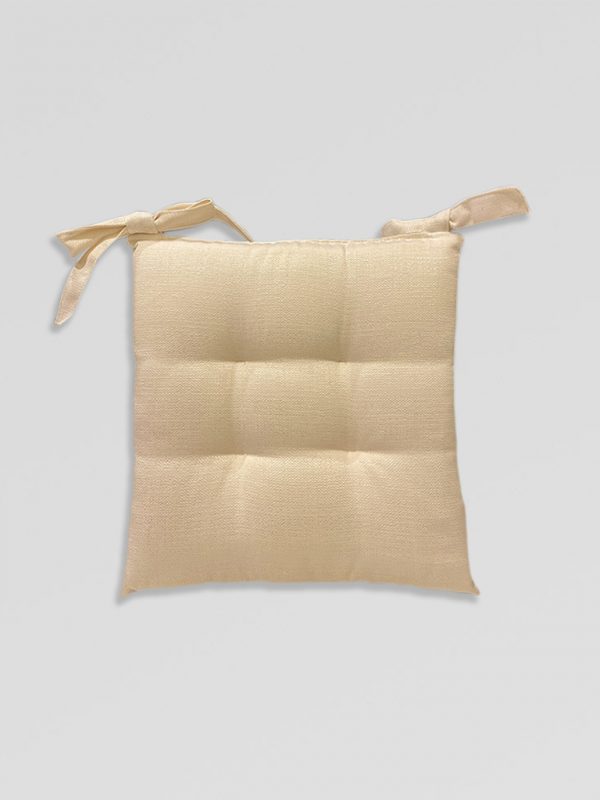 CUSCINO DA SEDUTA AVORIO 100% Cotone, Interno Poliuretano — Misura: 40 x 40 cm con lacci per essere assicurato alla seduta — Lavabile in lavatrice