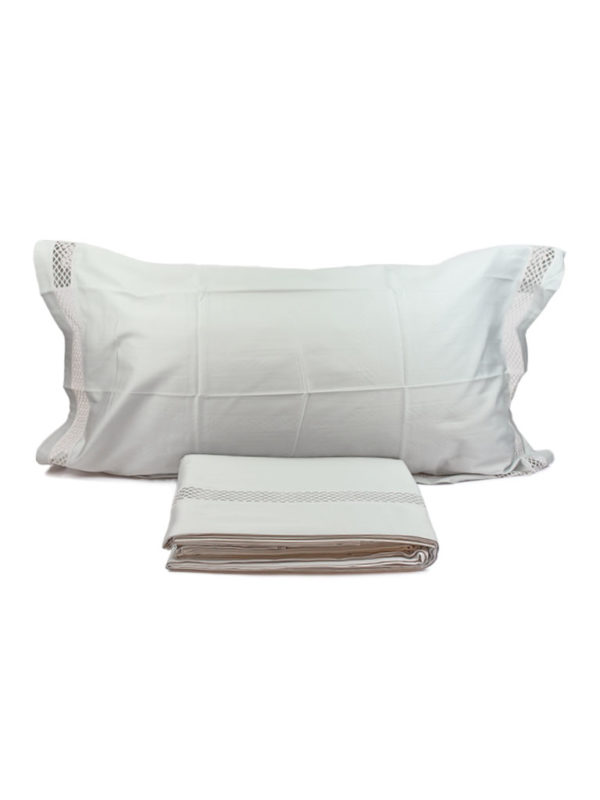 Completo lenzuola Dea 2P in raso di puro cotone, lenzuolo sotto piano. Misura: 270X290