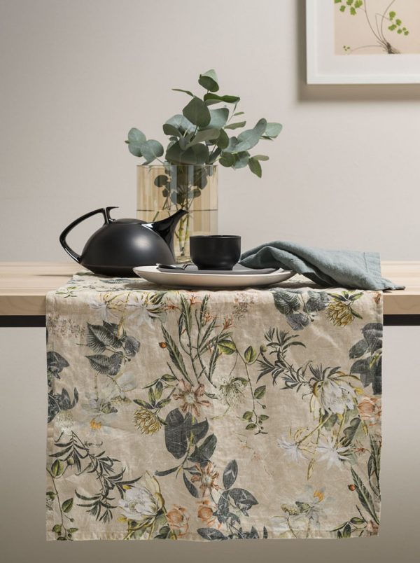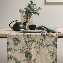 Striscia e centro tavola 50×140 con stampa erbario all over, 100% lino