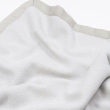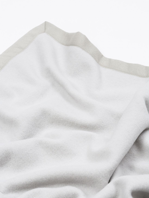 Morbida coperta invernale, in 100% lambswool di merinos che consente il massimo comfort calorico. Derivata da una struttura innovativa brevettata dalla Lanerossi negli anni 60. Colore “doppia faccia”, con un bordo in tono.