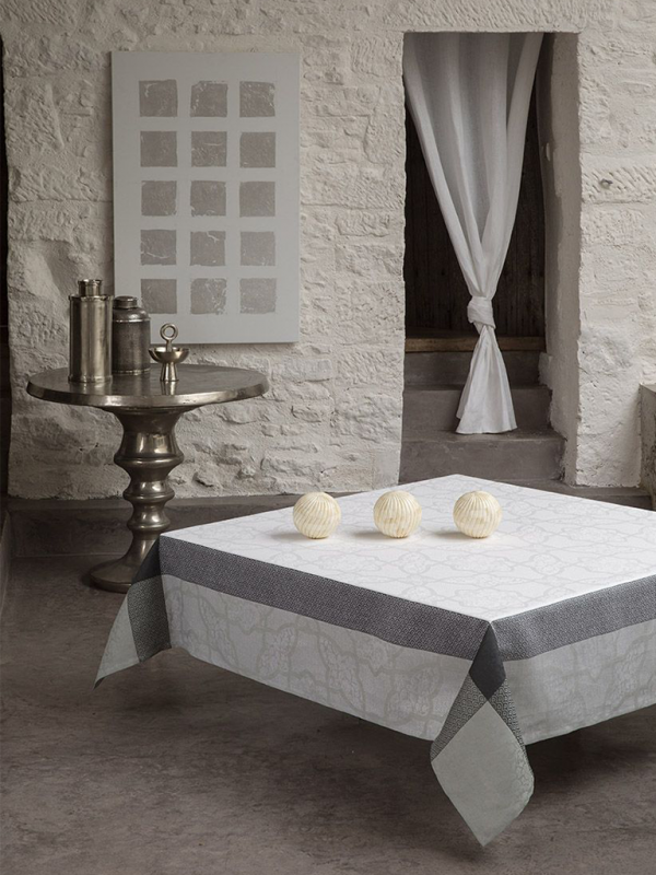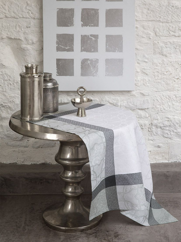 Viaggio in India, lungo la strada del lino… Questo disegno proposto in tre varianti contrastate rievoca la ricchezza delle sete, dei ricami, dei sari….