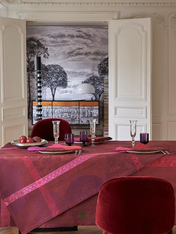 Ispirata alle pitture barocche del XVII secolo, la tovaglia “Sinfonia Barocca” ci accompagna in un viaggio nel passato e propone un maestoso fregio panoramico in omaggio alla natura e all’architettura italiane.