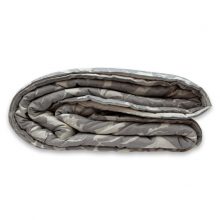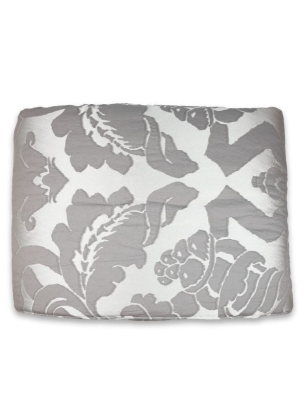 Copriletto in pregiatissimo tessuto jacquard, 63% cotone, 37% seta. Misura: 270×270. Colore: Terra argento