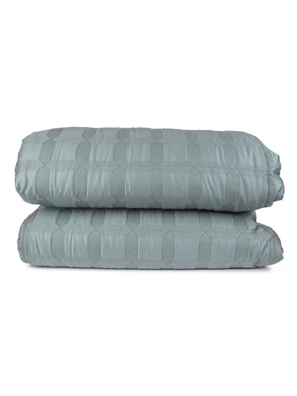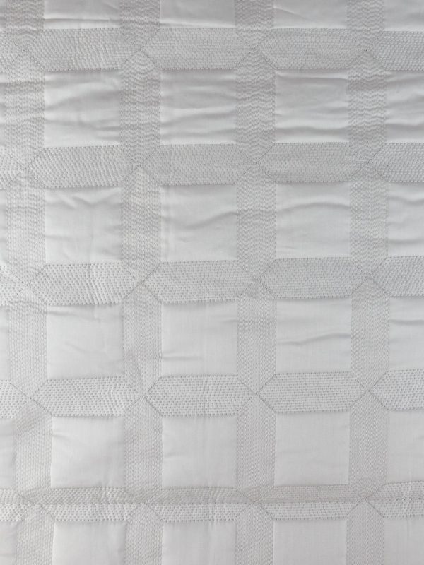 Trapunta in raso di cotone egiziano realizzati con un magnifico ricamo che forma dei quadretti e rilievo all over. Misura: 270×270