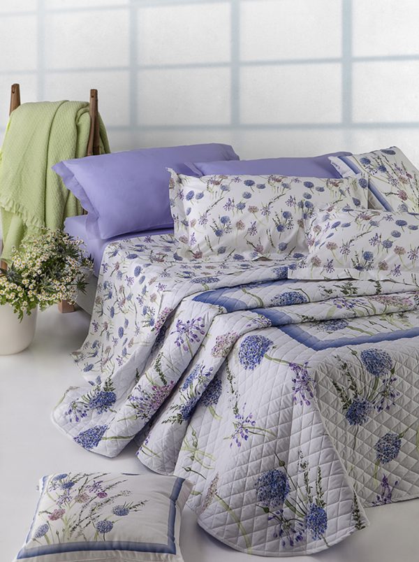 Copriletto trapuntato in percalle di puro cotone. Misura: 270×260. Colore: blu