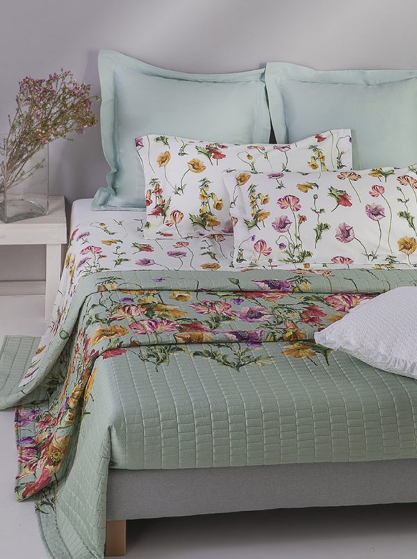Copriletto trapuntato in raso di puro cotone. Misura: 270×260
