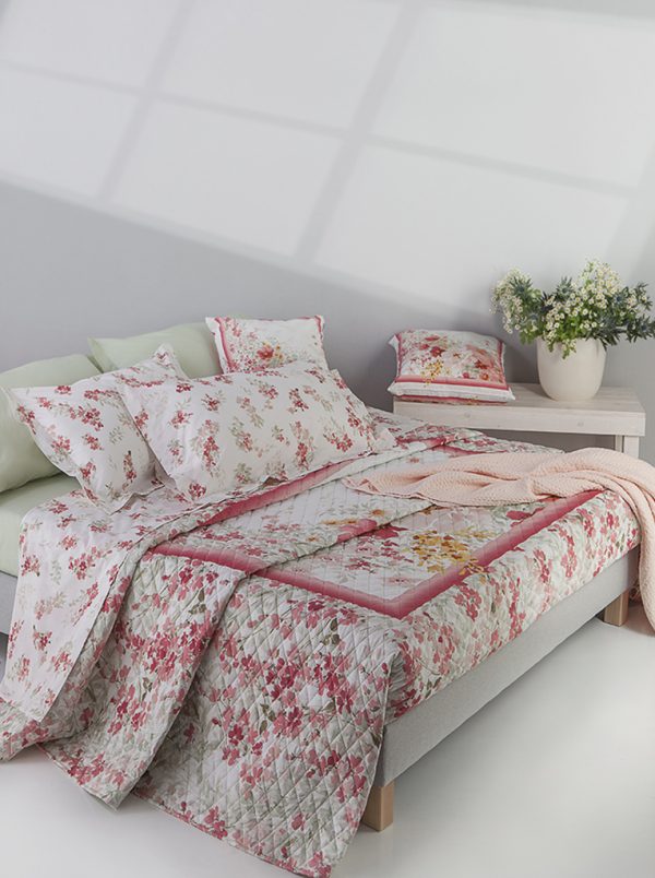 Copriletto trapuntato in percalle di puro cotone. Misura: 270×260. Colore: rosa