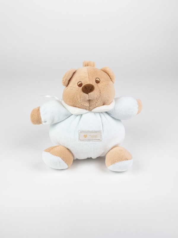Il carillon ? un peluche di morbida ciniglia vestito in tessuto piquet, tirando la piccola maniglia sul fondo, si attiva una dolce sinfonia che allieter? i momenti del giocare e render? pi? rilassante il momento del sonno