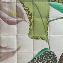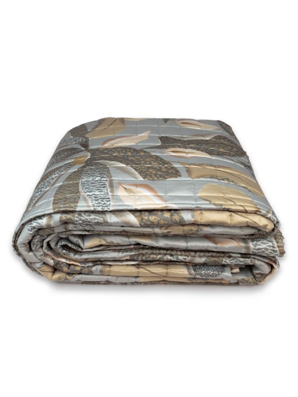 Trapuntino matrimoniale con tessuto fronte raso di cotone, stampa digitale, retro tinta unita 100% cotone. Imbottitura 100% poliestere. Misura: 260×270