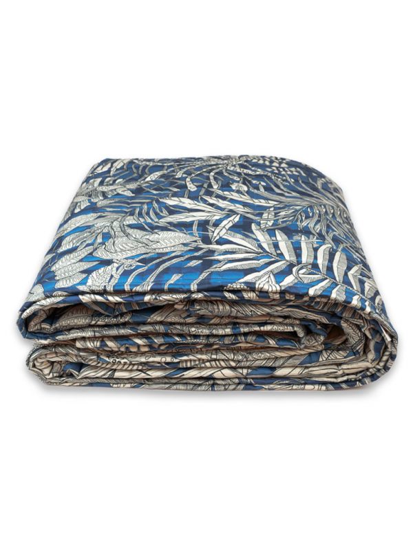 Trapuntino matrimoniale con tessuto fronte raso di cotone, stampa digitale, retro tinta unita 100% cotone. Imbottitura 100% poliestere. Misura: 260×270