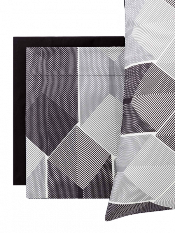 Il completo letto in 100% raso di cotone con applicazione di stampa digitale mentre il retro delle due federe e il lenzuolo sotto con angoli sono 100% percalle.