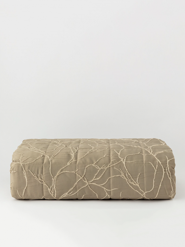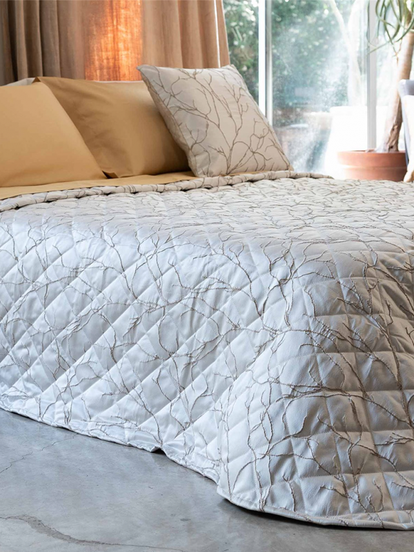 Trapuntino in 100% raso di cotone con imbottitura in poliestere di 100gr/m2. La trapuntatura è in continuo rombetto 5×5 con angoli tondi