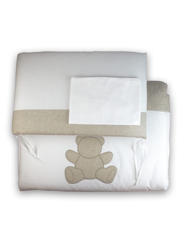 Trapunta + paracolpi lettino e federa. Tessuto: puro cotone. Imbottitura: poliestere. Colore: bianco