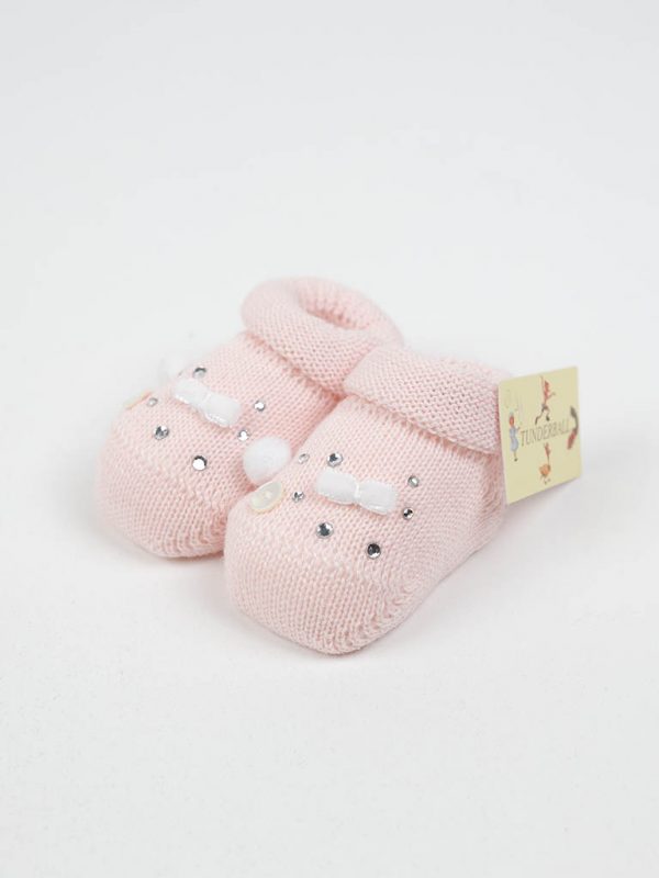 Babbuccia con strass + fiocco + bottone da 0 a 3 mesi variante Rosa